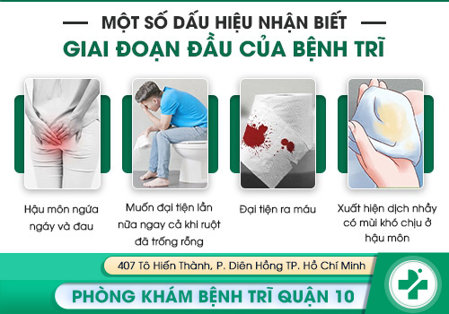 - Giai đoạn 1: Chảy máu khi đi cầu, búi trĩ chưa sa.